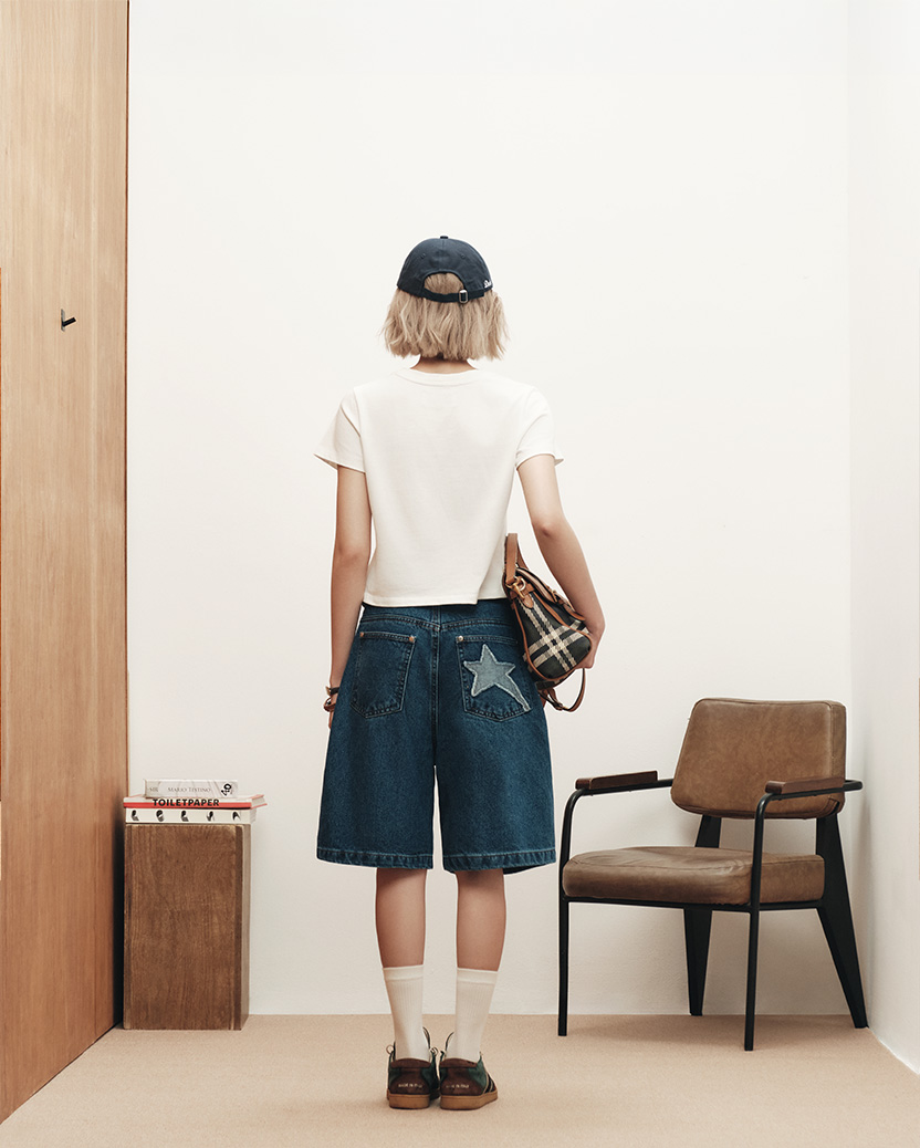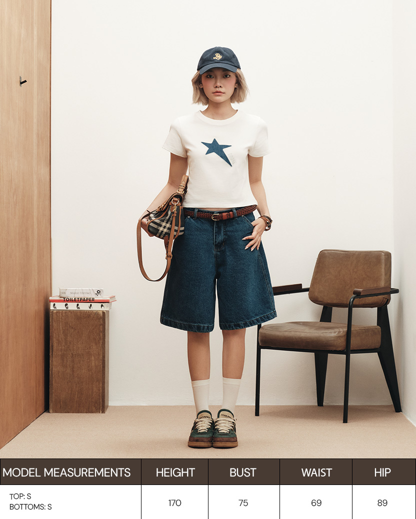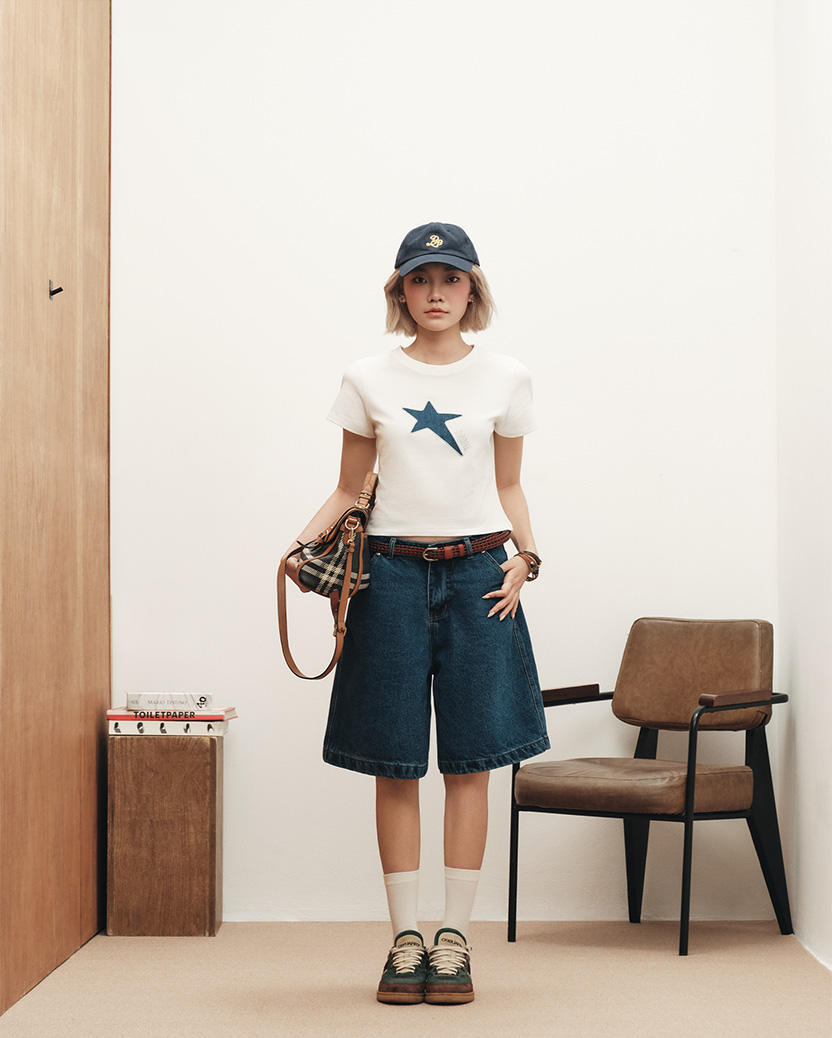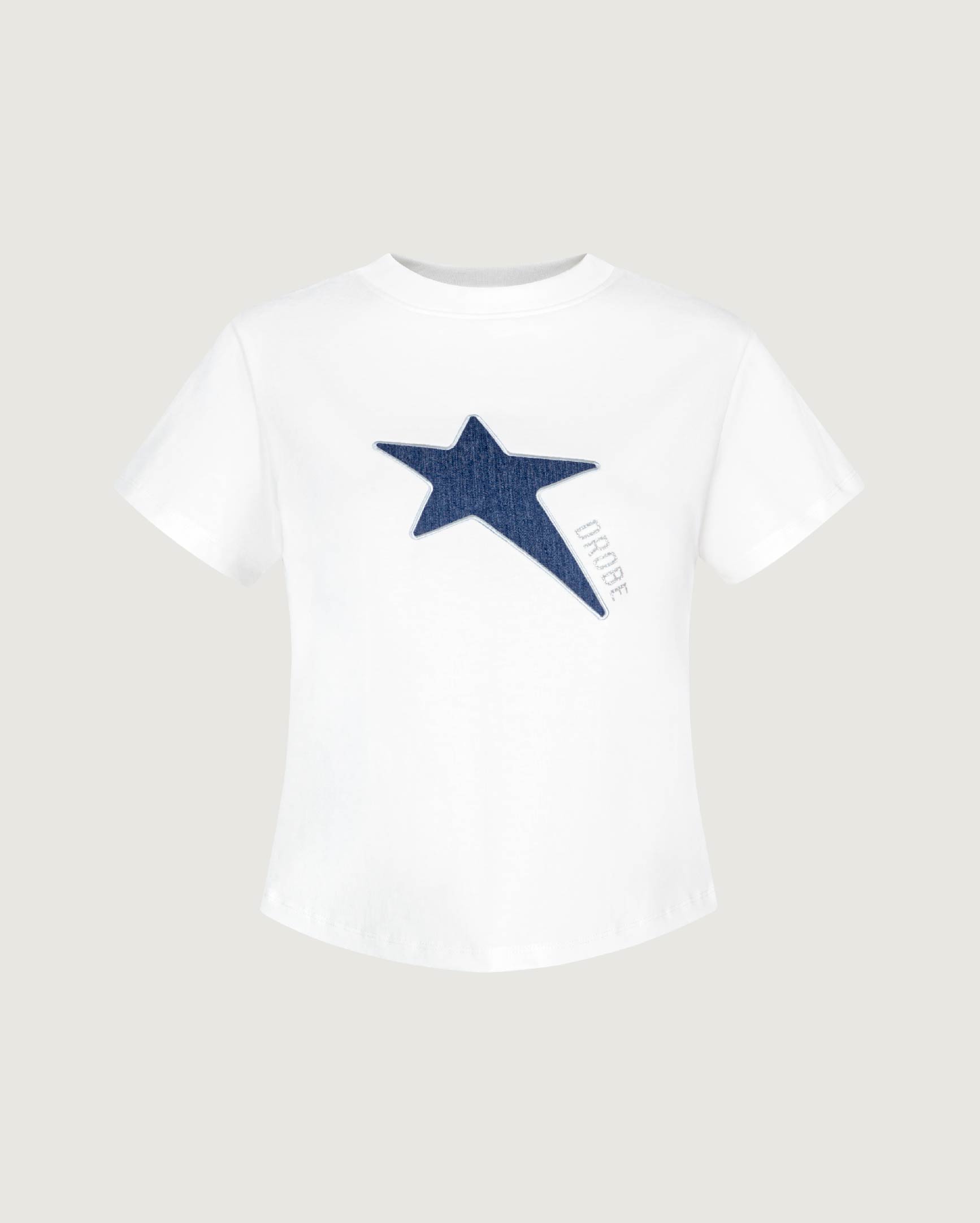 Glittered Star-Patch Baby Tee - Off-white